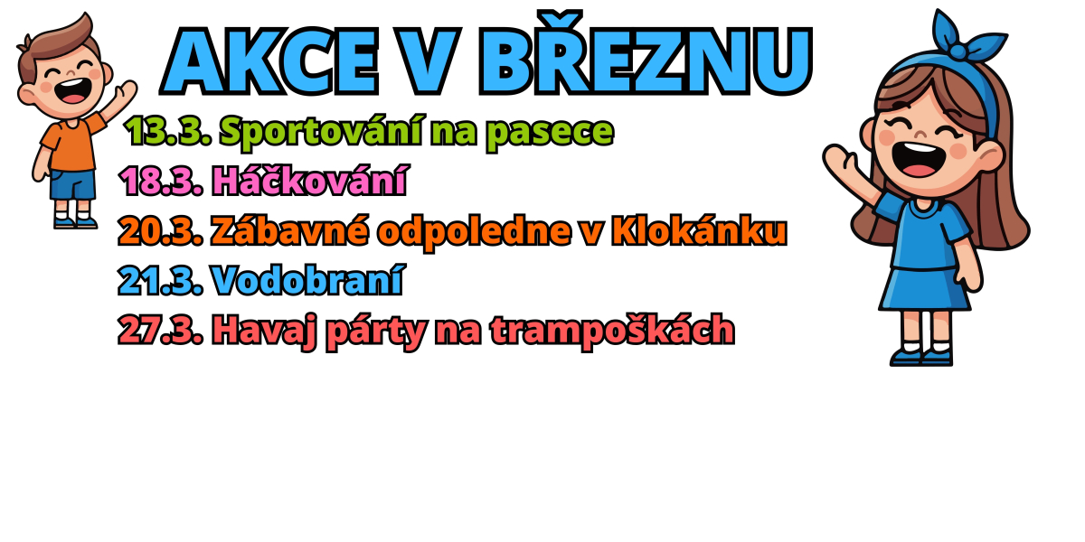 Pohyb, tvoření i sladká zábava na jednom místě! Čeká nás velikonoční jumping, kreativní dílničky, zdobení perníčků, tanec, hry a velikonoční nadílka se zajícem. Pro děti bude připravena snídaně, dvě svačiny, oběd a pitný režim. Přijďte si užít jarní den plný zábavy.